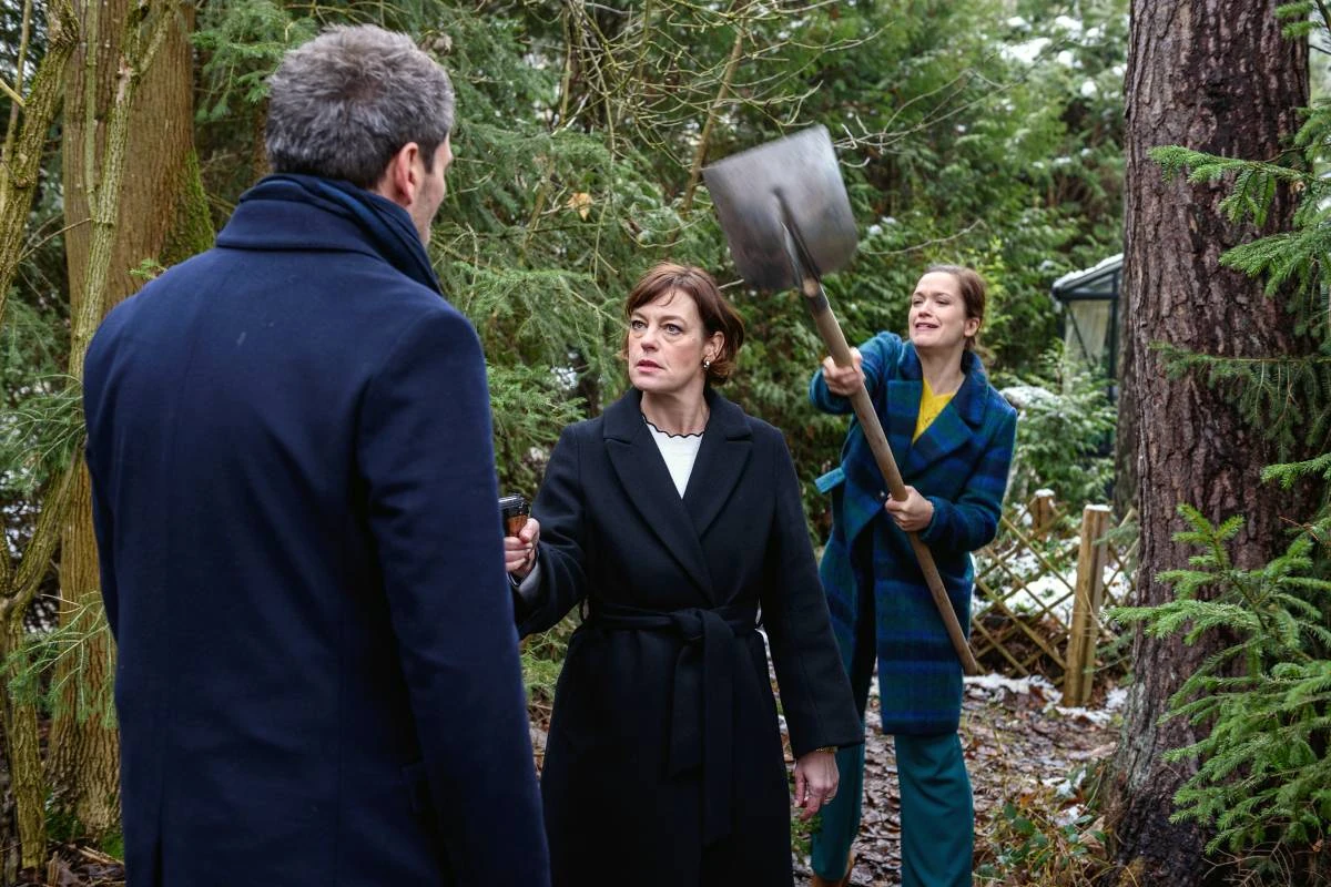 Xenia versucht Christoph umzubringen, Eva kann sie im letzten Moment mit einer Schaufel niederschlagen.