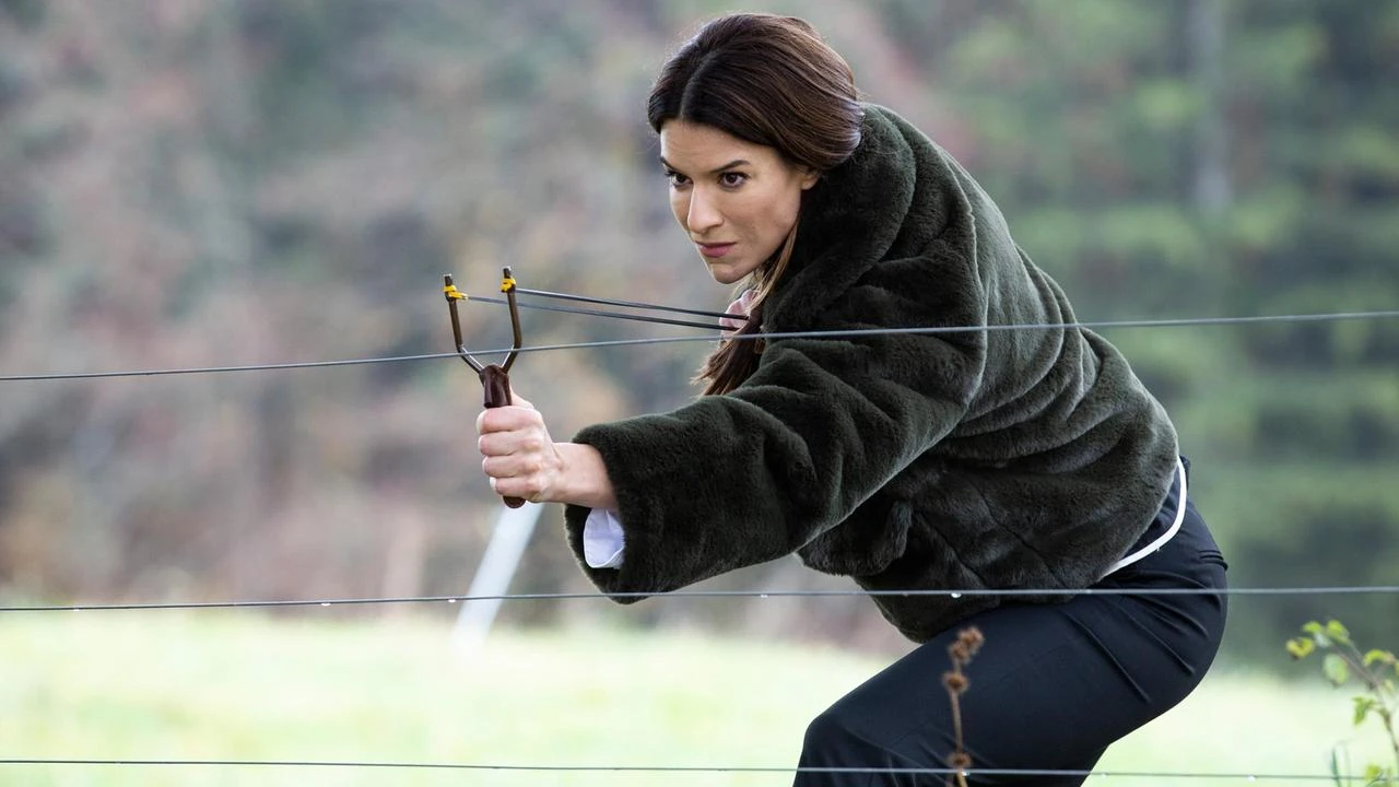 Voller Eifersucht schießt Nadja mit einer Zwille auf Nero, sodass dieser Franzi abwirft.